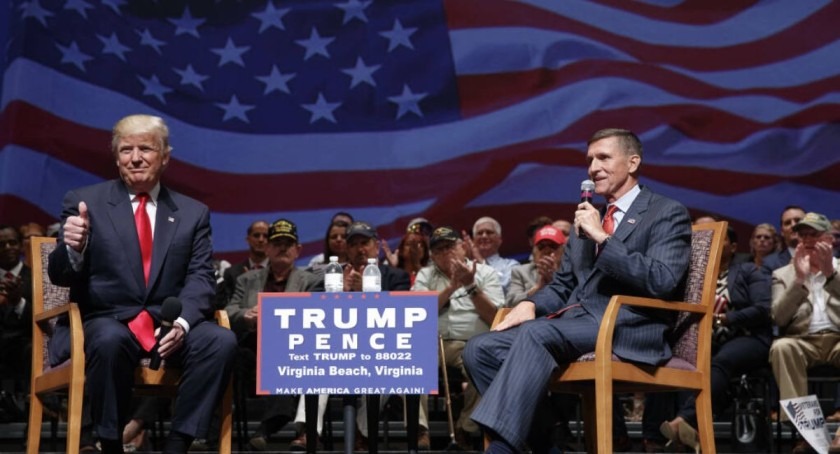 Flynn became a national security adviser to Donald Trump during the 2016 presidential campaign. His fiery speeches at Republican rallies, including leading “Lock her up!” chants made him a conservative favorite.